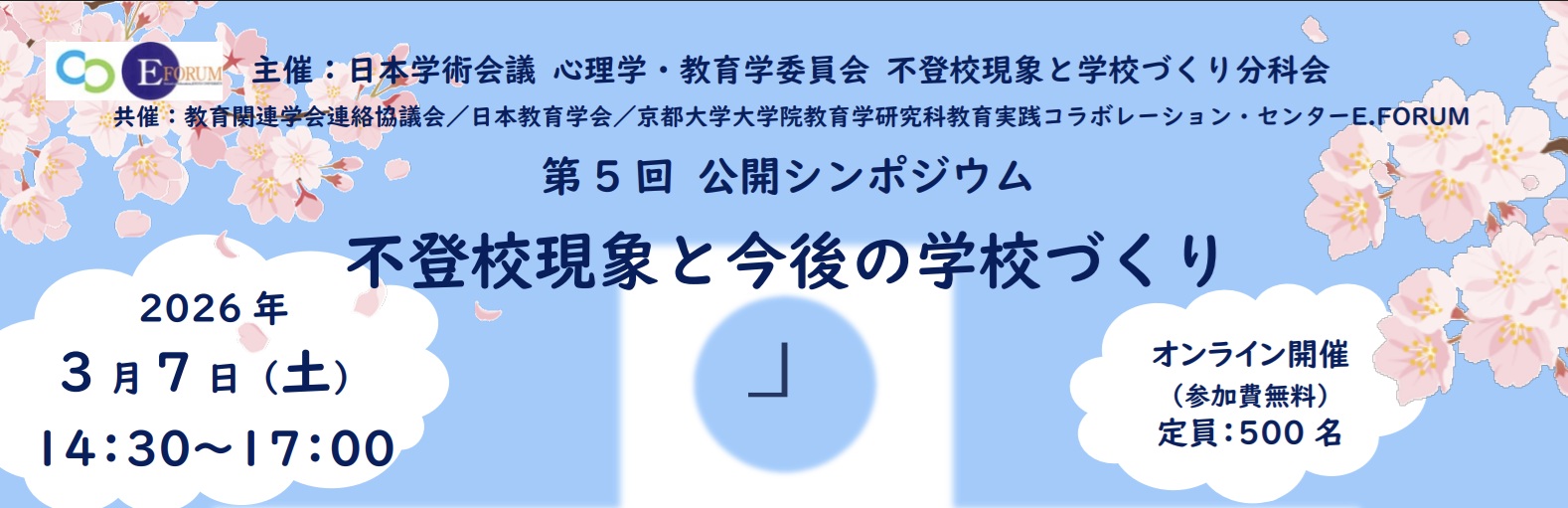 日本学術会議心理学・教育学委員会 不登校現象と学校づくり分科会主催、2026年3月開催の総会とシンポジウムのお知らせです。