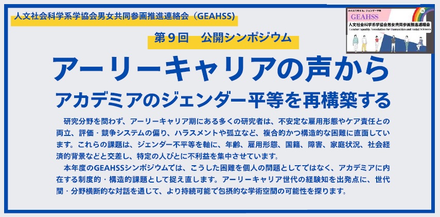 主催: 人文社会科学系学協会男女共同参画推進連絡会(GEAHSS)